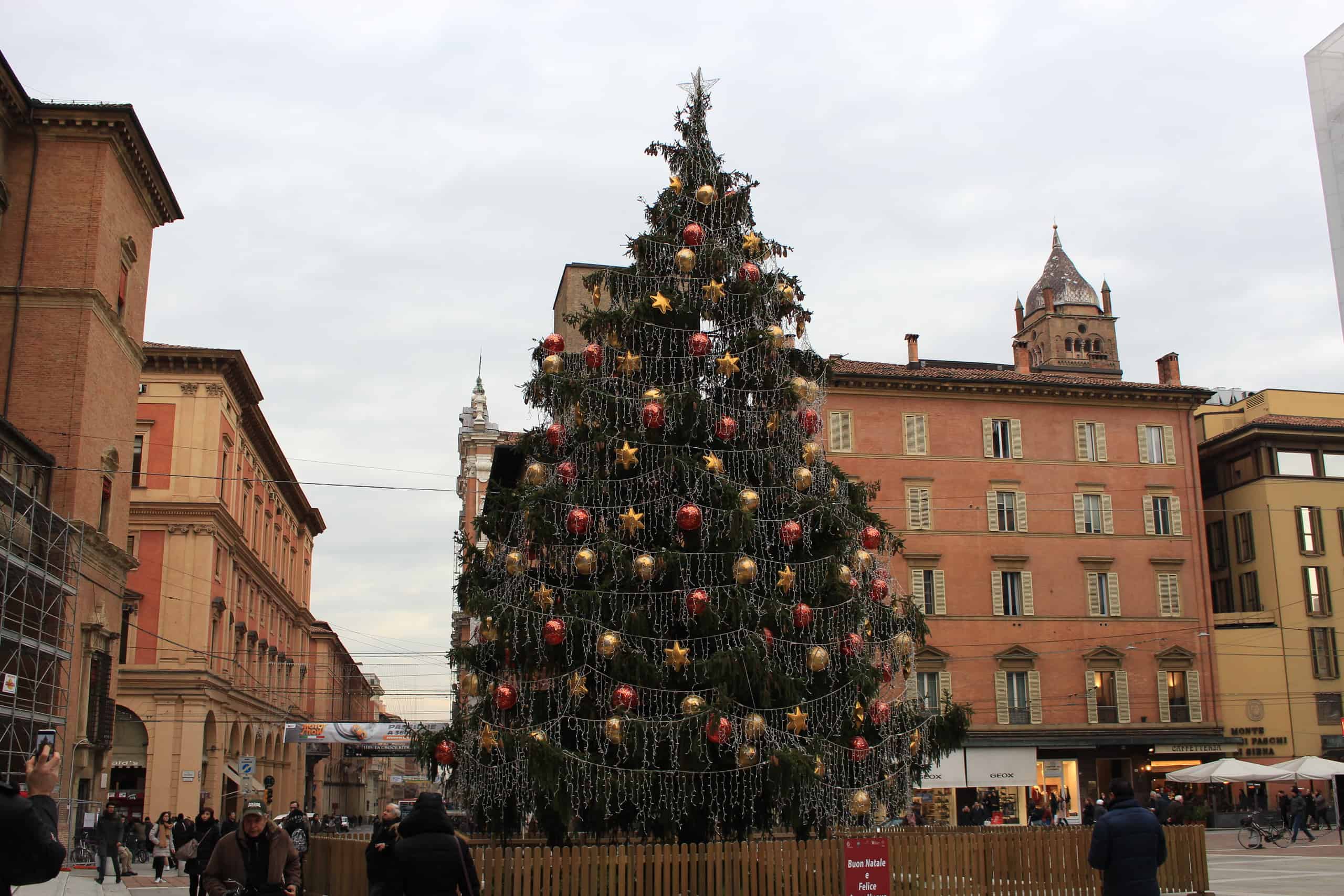 in centro, senza sole, con le luci di Natale