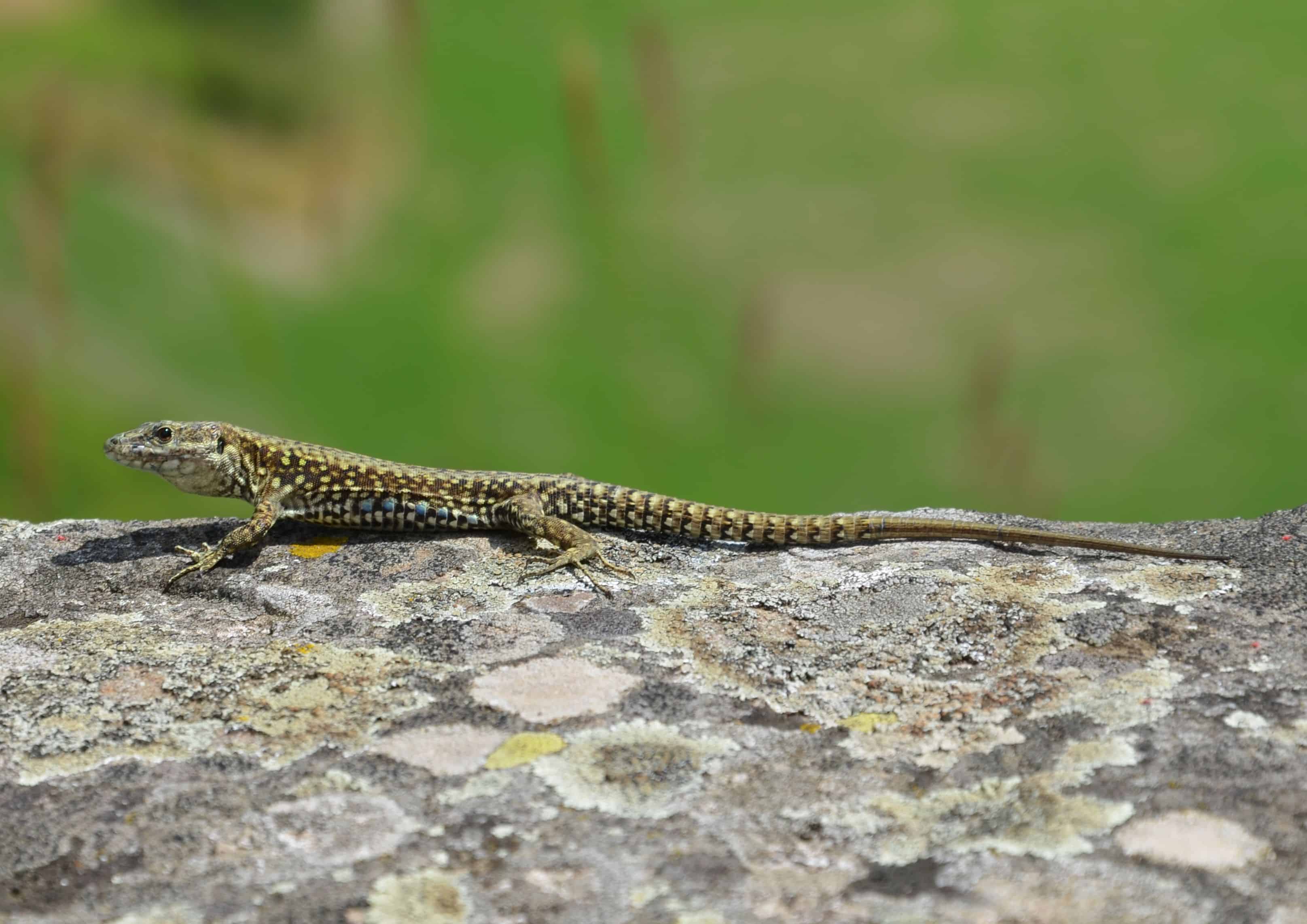 Lucertola immobile si scalda al sole Tempo : 1/250 sec. Diaframma : F/8 Iso : 100 Distanza focale : 98 mm.